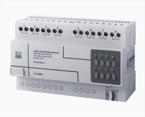 The B-RL 8C10.01 switching actuator can supply 8 channels with a current of 10A. The module is able to support diversified devices and can be applied in to any solution which requires switching control.