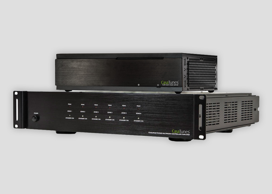 The CasaTunes multi-room music system includes the CasaTunes music server and one or more CasaTunes 6X6 matrix amplifiers. The CasaTunes music server is the heart and brain of your multi-room music system, supplying four independent High Definition audio streams (or 2 for the CT2-6Z) to the CasaTunes 6X6 matrix amplifier. Each stream, or streamer, acts as a stand-alone music player. You select the music to play on each player, and which player to listen to in each room. You can listen to the same music in all rooms, or any combination of rooms.
